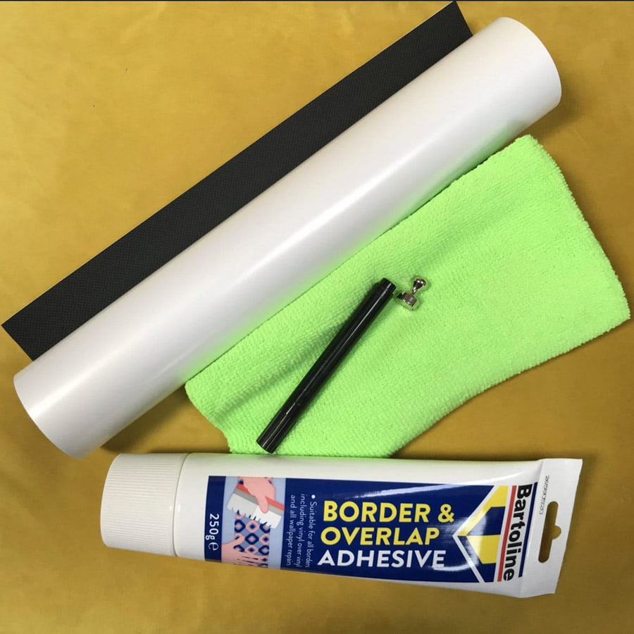 Each large sample kit includes the chosen self-adhesive film, a short installation guide and the relevant accessories to test the product.